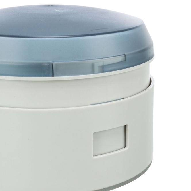 Bevor du mit dem Strategiespiel starten kannst, musst du einige Leckerlis oder Trockenfutterkroketten in den Buzzer legen. Durch die angeschrägten Flächen rutschen diese automatisch in die Richtung der Öffnungen. Den Deckel drehst du anschließend wieder auf den Buzzer.