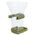 Dieser Futterautomat aus Kunststoff wird von außen am Käfig befestigt und lässt sich von oben befüllen.
