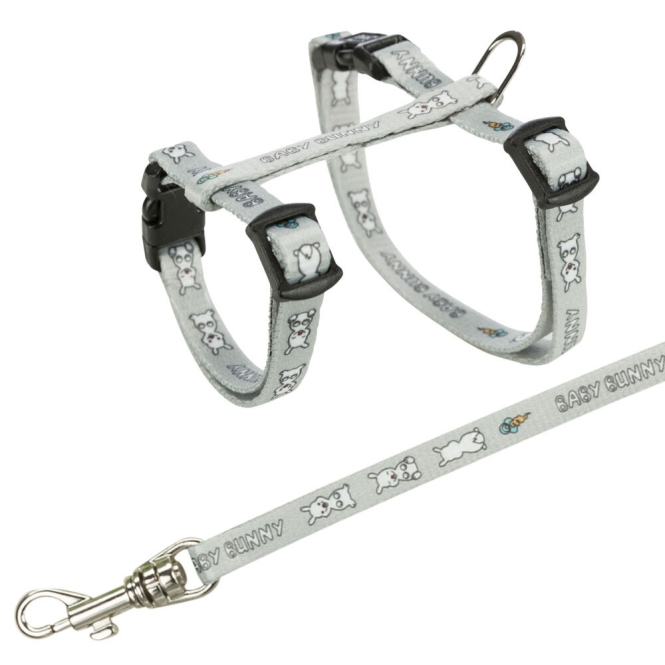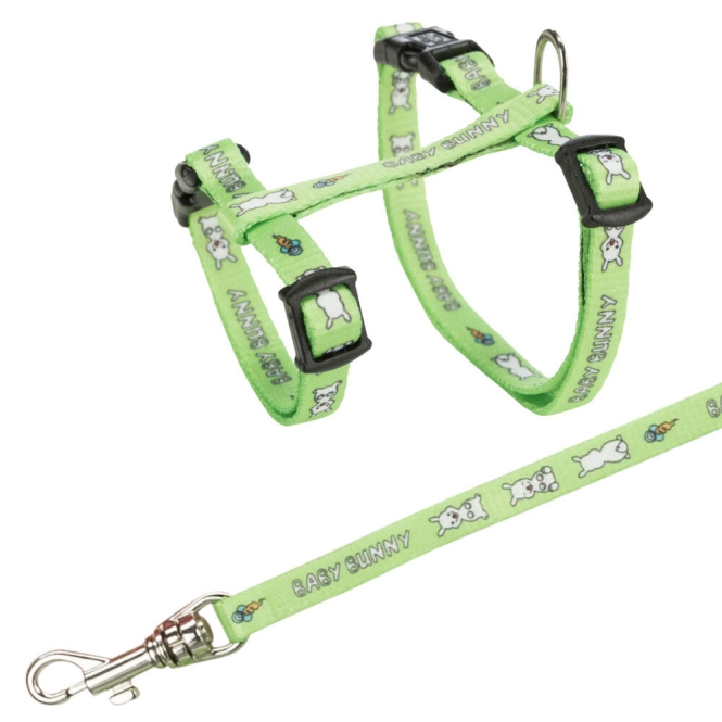 Die Garnitur für Zwergkaninchen und junge Kaninchen besteht aus stabilem Nylon und ist stufenlos verstellbar. Mit Schnappverschlüssen.