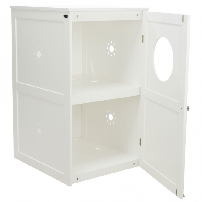 • Einstiegsloch oben erleichtert das Säubern der Katzentoilette in der oberen Etage