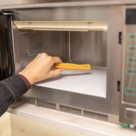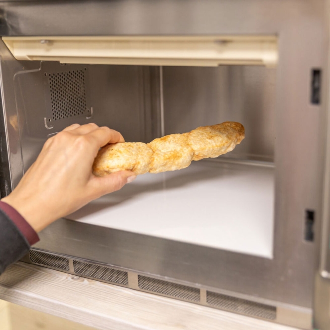 Sollte dein Hund den Kaukäse aufgrund der Härte nicht gut kauen können, oder ein paar kleine Reststücke übriglassen, kannst du ihn für 45 bis 90 Sekunden unter Aufsicht in der Mikrowelle aufpuffen lassen. In der Mikrowelle nimmt der Käse an Volumen zu, wird knusprig und leichter zu kauen. Bevor du den Kaukäse verfütterst, solltest du ihn abkühlen lassen.