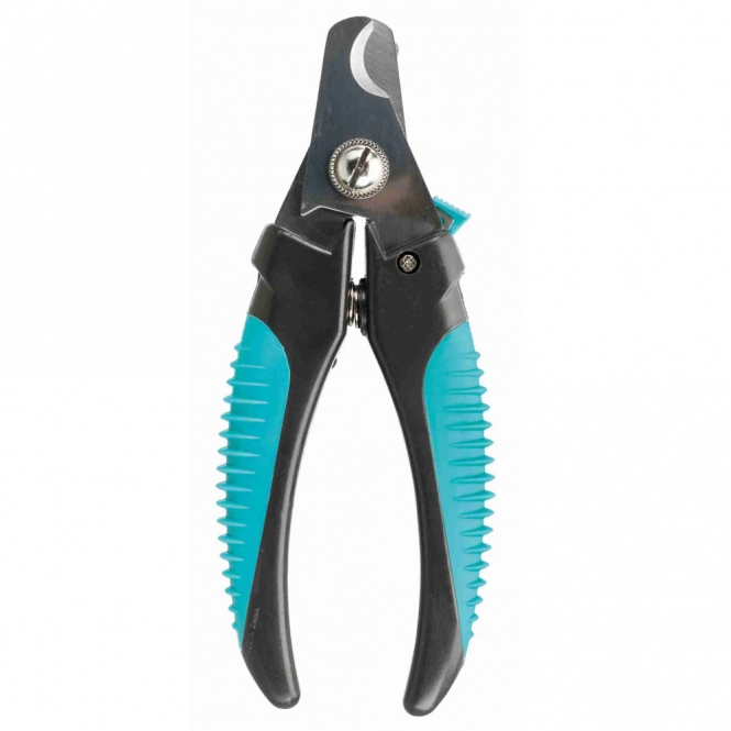 Die Krallenschere besteht aus Metall mit Kunststoffgriffen mit rutschfester Gummieinlage.
