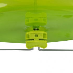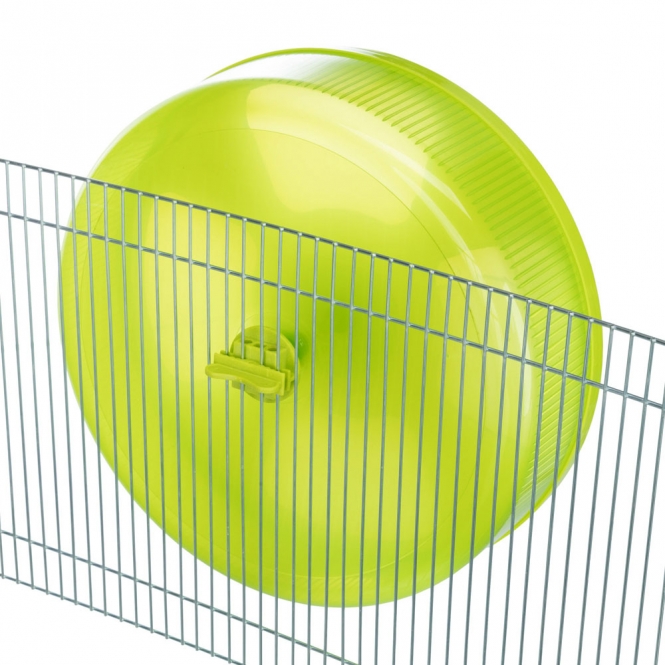 DasLaufrad kann entweder freistehend verwendet werden oder ins Käfiggittereingehängt werden. Die Kunststoffabdeckung vorne kann einfachabgenommen werden und macht die Reinigung des Laufrades so ganz einfach.