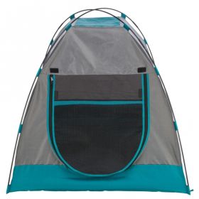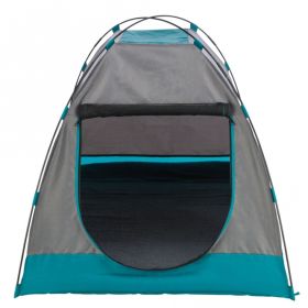 Das Hunde-Camp ist schnell und einfach auf- und abgebaut und auch für Sicherheit bei Wind ist gesorgt: Das Zelt kann mithilfe von Heringen wie ein normales Zelt gesichert werden. Durch Lüftungsgitter kann Frischluft zirkulieren und sorgt für eine angenehme Atmosphäre im Zelt – so wird auch bei Sonne ein angenehm schattiger Platz zu Verweilen geboten.