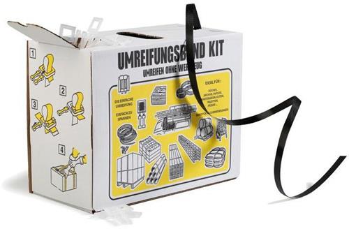 Ideal zum Sichern von Kartonagen bei geringem Bedarf Polypropylen-Band und Kunststoffschnallen sind immer griffbereit Manuelle Anwendung ohne Verschlussgerät Leicht und flexibel Reissfestigkeit in kp: 112