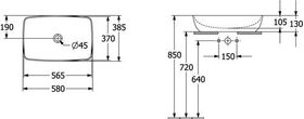 für Wandauslauf-Armatur oder Armatur mit erhöhtem Standfuß · ohne Hahnlochbank · kombinierbar mit Möbelprogramm Legato