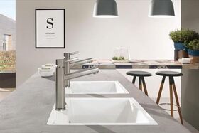 für den flächenbündigen Einbau in Natur- · Keramik- · Glas- und Kunstplatten · inkl. Ablaufgarnitur verchromt · minimale Unterschrankbreite 500 mm · Minimalstärke der Platte mind. 30 mm · 3 vorgestochene Hahnlöcher · CeramicPlus