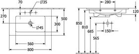 V&B Schrankwaschtisch VENTICELLO 800x500mm, mit ÜL we C+