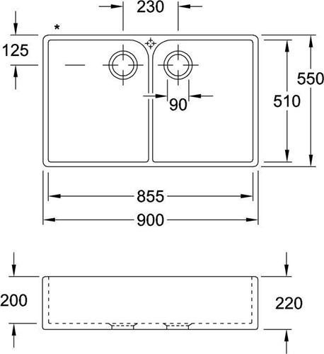 V&B Spülstein Doppelbecken 90 X 855x550mm Exzent. crema