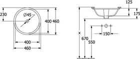 V&B Unterbauwaschtisch ARCHITECTURA d= 400mm, mit ÜL, rund we C+