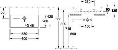 V&B Waschtisch MEMENTO 2.0 600x420mm o ÜL o HL stone white C+