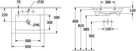 V&B Waschtisch VENTICELLO mit ÜL 650x500mm we