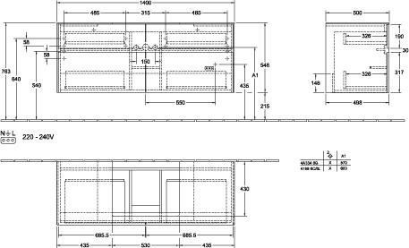 V&B Waschtischunterschrank COLLARO 140x54,8x50cm WT mtg m LED-B. Truffle gr