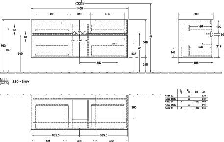 V&B Waschtischunterschrank COLLARO 140x54,8x50cm WT mttg Glossy Grey