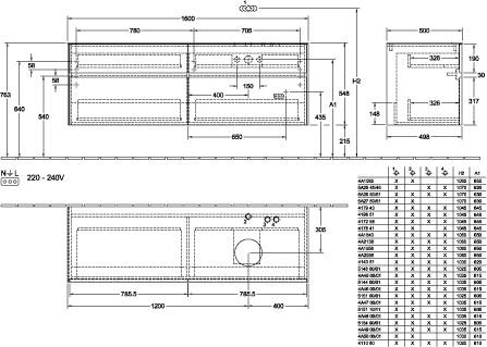 V&B Waschtischunterschrank COLLARO 160x54,8x50cm WT re m LED-B. bl ma lacq.