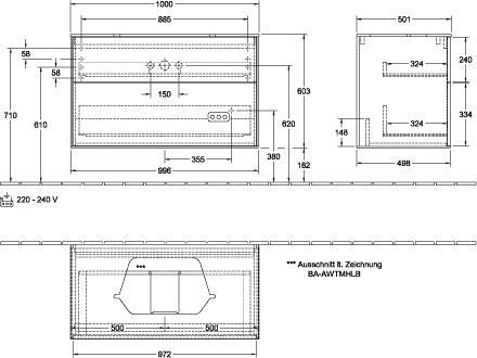 V&B Waschtischunterschrank FINION 1000x603x501mm AP Glas bl ma wh ma lacq.