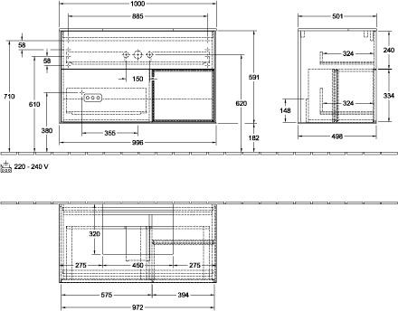 V&B Waschtischunterschrank FINION 1000x603x501mm Regalele. Wln ven wh Matt