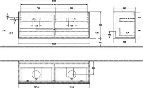 V&B Waschtischunterschrank FINION 1600x603x501mm AP Gl bl ma gls wh lacq.