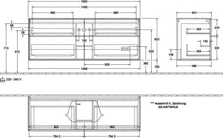 V&B Waschtischunterschrank FINION 1600x603x501mm AP Glas bl ma wh ma lacq.