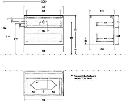 V&B Waschtischunterschrank FINION 800x603x501mm AP Glas bl ma bl ma lacq.