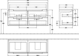Griff chrom glänzend · 4x Auszüge · 1x Accessory Box 4/10 · 1x Accessory Box 5/10 · 1x Accessory Box 9/10 · 4x Aluminiumstangen · 2x Glasabtrennungen · wandhängend · inkl. Befestigungssatz · kombinierbar mit Schrank-Doppelwaschtischen Subway 2.0 7175 D0/D1