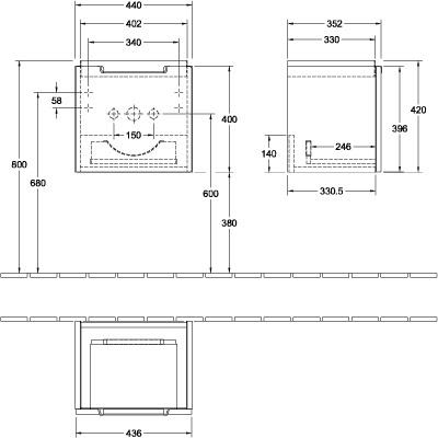 V&B Waschtischunterschrank SUBWAY 2.0 f HWB 440x420x352mm Black Matt Lacquer