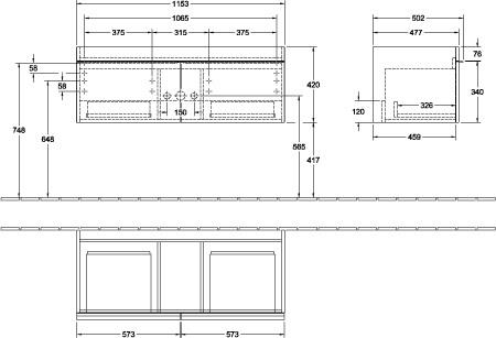 V&B Waschtischunterschrank VENTICELLO 1153x420x502mm Griff Copper Glossy Grey