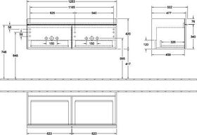 wandhängend · inkl. Befestigungssatz und Raumsparsiphon · Ausstattung: 2x Auszüge mit Antirutsch-Matte · 2x Accessory Boxen 9/10 · 2x hohe Glasabtrennungen · 4x niedrige Glasabtrennungen · kombinierbar mit Schrank-Doppelwaschtisch Venticello 4111 DL/DG/DJ