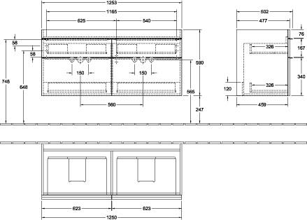 V&B Waschtischunterschrank VENTICELLO 1253x590x502mm Griff white White Wood