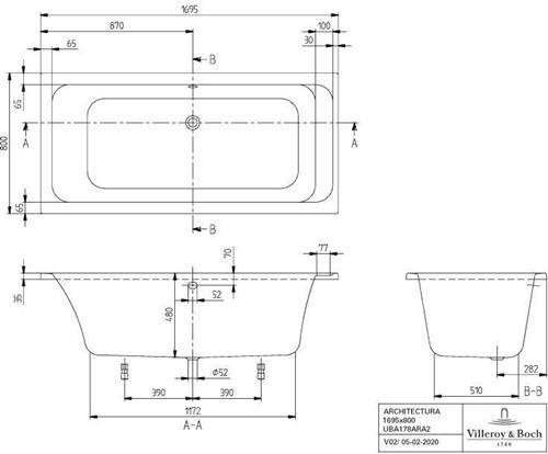 V&B Whirlpoolsystem ARCHITECTURA m BW R-eck 170x80 Tech. Pos 1 we