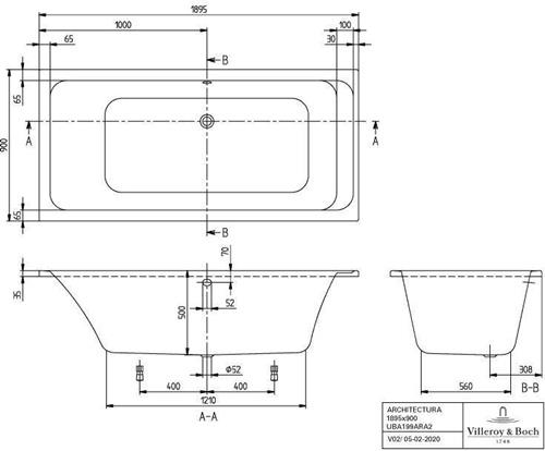 V&B Whirlpoolsystem ARCHITECTURA m BW R-eck 1900x900 Tech. Pos 1 we