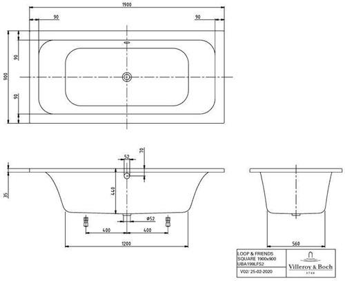 V&B Whirlpoolsystem LOOP & FRIENDS m BW R-eck 1900x900 Tech. Pos 2 we