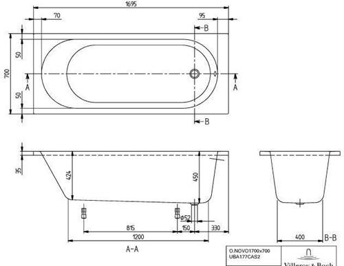 V&B Whirlpoolsystem O.NOVO m BW R-eck 1700x700 Tech. Pos 1 we