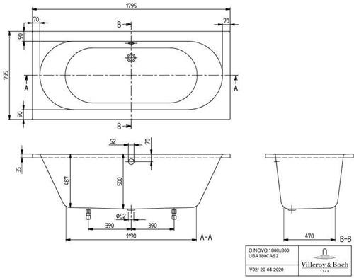 V&B Whirlpoolsystem O.NOVO m BW R-eck 1800x850mm Tech. Pos 2 we
