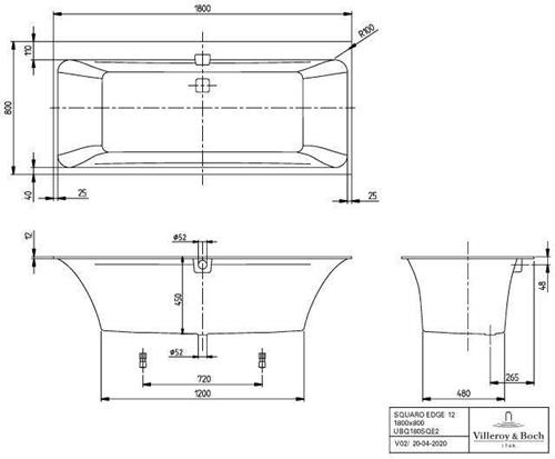 V&B Whirlpoolsystem SQUARO EDGE 12 m BW R-eck 180x80 Tech. Pos 2 we
