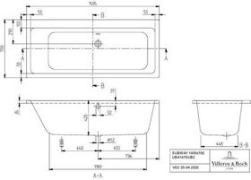V&B Whirlpoolsystem SUBWAY m BW R-eck 160x70 Tech. Pos 1 we