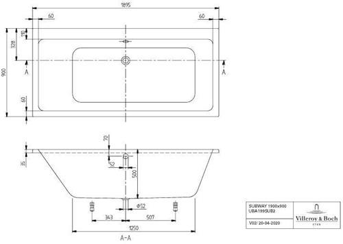 V&B Whirlpoolsystem SUBWAY m BW R-eck 1900x900 Tech. Pos 2 we