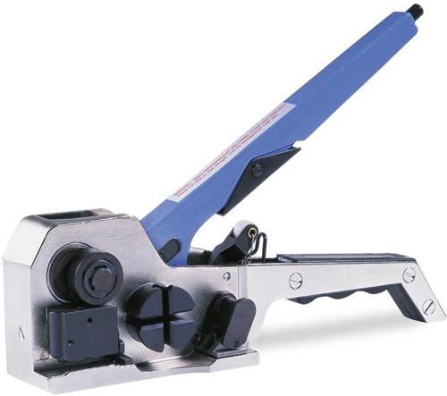 Zur Umreifung mit PP- und Polyesterband Leichtes · robustes Werkzeug mit hoher Spannkraft Hervorragend geeignet zum horizontalen und vertikalen Umreifen Sehr hohe Verschlussfestigkeit durch innen aufgerauhte Hülsen Schnelles Arbeiten · da Spannen und Verschliessen mit einer Handbewegung erfolgt
