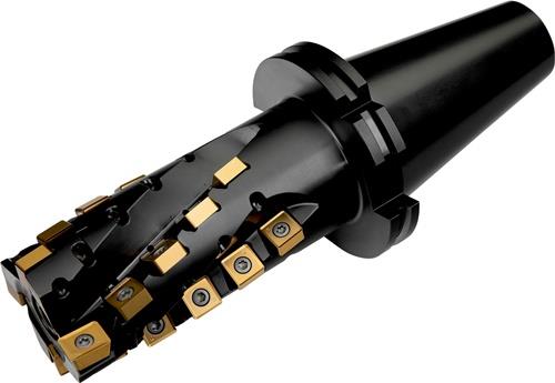 Walzenstirnfräser mit doppelt negativer Geometrie zum spannen von 2 Stück LNET 1606.. und 26 SN.. 1305.. doppelseitigen Wendeschneidplatten · Schnittdurchmesser 80mm mit 90° Anstellwinkel und SK 50 Kegelschaft gemäß ISO/DIS 7388-1 · 134mm Funktionslänge 292mm Gesamtlänge · Kühlkanalbohrung zum tiefen Schulterfräsen und tiefen Nutfräsen mit einer maximalen Schnitttiefe von 134mm
