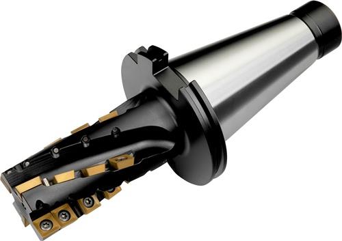 Walzenstirnfräser mit positiver/negativer Geometrie zum spannen von 3 Stück APE. 1504.. und 30 SPE. 1204.. einseitigen Wendeschneidplatten · Schnittdurchmesser 80mm mit 90° Anstellwinkel und BT 50 Kegelschaft gemäß JIS B 6339 · 95mm Funktionslänge 275mm Gesamtlänge zum tiefen Schulterfräsen und tiefen Nutfräsen mit einer maximalen Schnitttiefe von 95mm