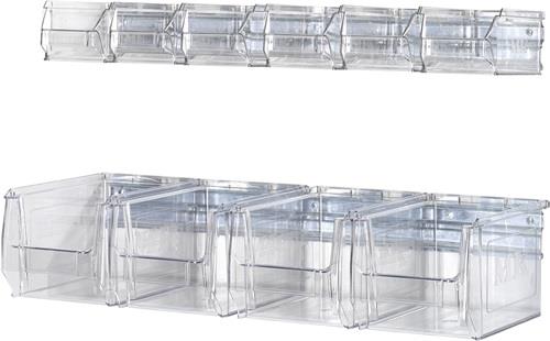 mit transparenten Sichtlagerkästen · verzinkte Stahlschiene, Breite 602 mm
