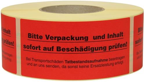 Warnetiketten Maße 145x70mm Papier rot Verpackung u. Inhalt auf Beschäd. prüfen