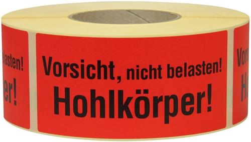Warnetiketten Maße 145x70mm Papier Vorsicht nicht belastbarer Hohlkörper!