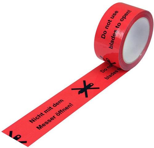 Warnklebeband Breite 50mm Länge 66m S.52µ PP rot Aufdruck Messersymbol TRANSPAK - VPE: 12