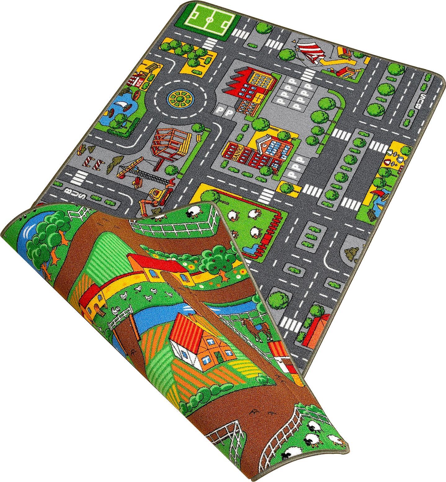 Duoplay Maße (L/B): 100 x 190 cm + Material: Polyester. Muster: City oder Farm. Ab 3 Jahren. Straßenverlauf kann variieren.