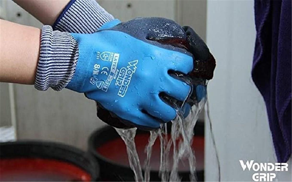 Der WG-318 Aqua ist ein doppelt vollbeschichteter Latexhandschuh mit einem 13-Gauge-Nylonfutter. Dank der Wonder Grip® Technology™ sorgt die Beschichtung für eine unvergleichliche Griffigkeit und Stärke in trockener oder nasser Umgebung. Der WG-318 Aqua ist 100 % wasserdicht und hält die Hände des Benutzers trocken und komfortabel. In Bezug auf Griffigkeit und Flexibilität ist er unser bevorzugter Handschuh für nasse Umgebungen.Er garantiert Komfort und Griffigkeit bei gleichzeitig hervorragender Flexibilität.