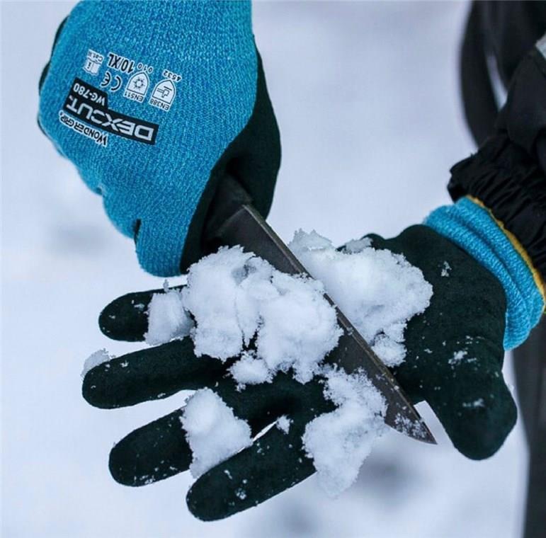 Der WG-780 Dexcut® ist ein Handschuh mit einer einfachen Nitrilbeschichtung auf der Handfläche und einem gestrickten 10-Gauge-Innenfutter aus Aramid-, Acryl-, Elasthan- und Mineralfasern. Der WG-780 ist die ideale Lösung für alle Arbeitsumgebungen mit thermischen Risiken und der Gefahr von Schnittverletzungen. Dank unserer speziell entwickelten SZNT™ gewährleistet er auch bei extremer Kälte bis -20 °C eine sehr gute Flexibilität. Dank seinerSchnittfestigkeit (EN 388:2016 Klasse D) bietet dieser Handschuh einen hervorragenden Schutz in kalter Umgebung.