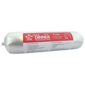 In der Wild Dinner Gourmet-Wurst Pute mit Hirse sind 91% Fleisch und Innereien von der Pute sowie Hirse, Apfel und Rote Beete verarbeitet.Alleinfuttermittel für Hunde