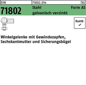 DIN 71802 Stahl Form AS galvanisch verzinkt Winkelgelenke mit Gewindezapfen · Sechskantmutter und Sicherungsbügel - Abmessung: AS 16-M 10 VE=S (10 Stück)