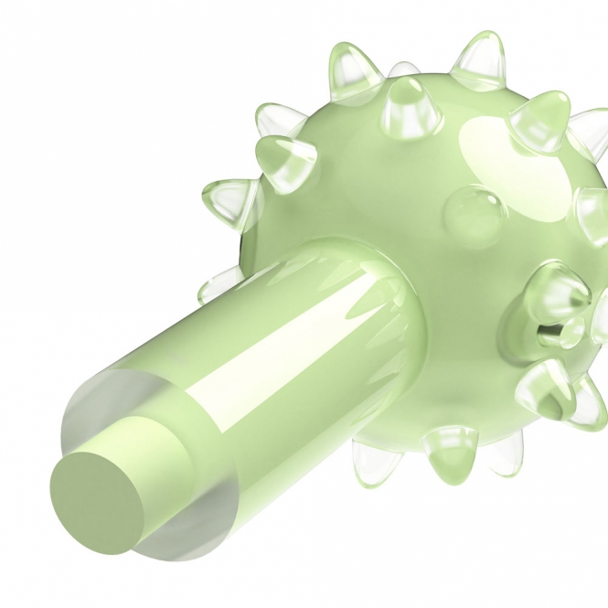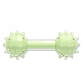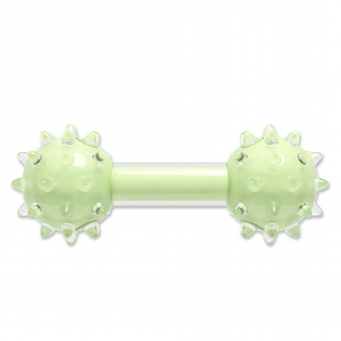 Die Hantel mit Noppen ist grün und duftet nach leckerer Minze. Sie ist ca. 18 cm groß.
